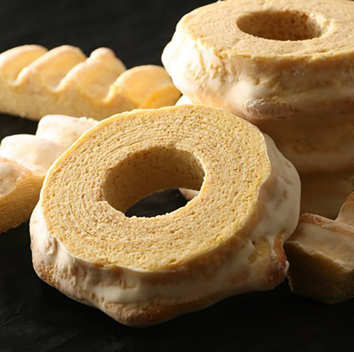 かめばかむほど焦がしバターの風味が口いっぱいに広がる丸福バームのハード系バウムクーヘン。